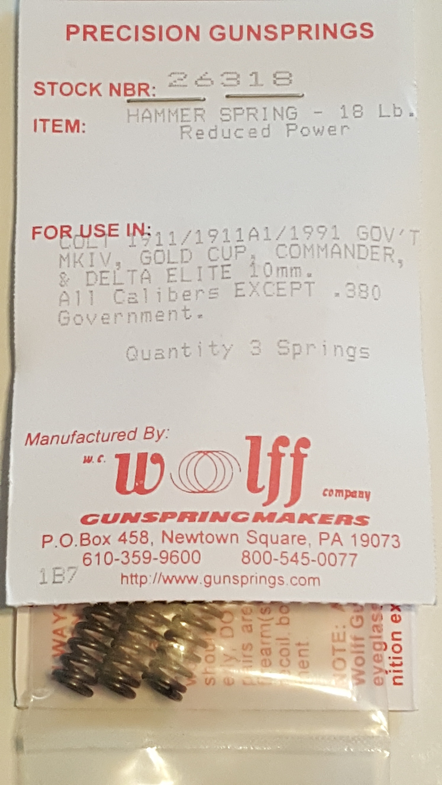 26318 Wolff COLT 1911/CMMDR RP HAMMER SPRING 18LB Pak of 3