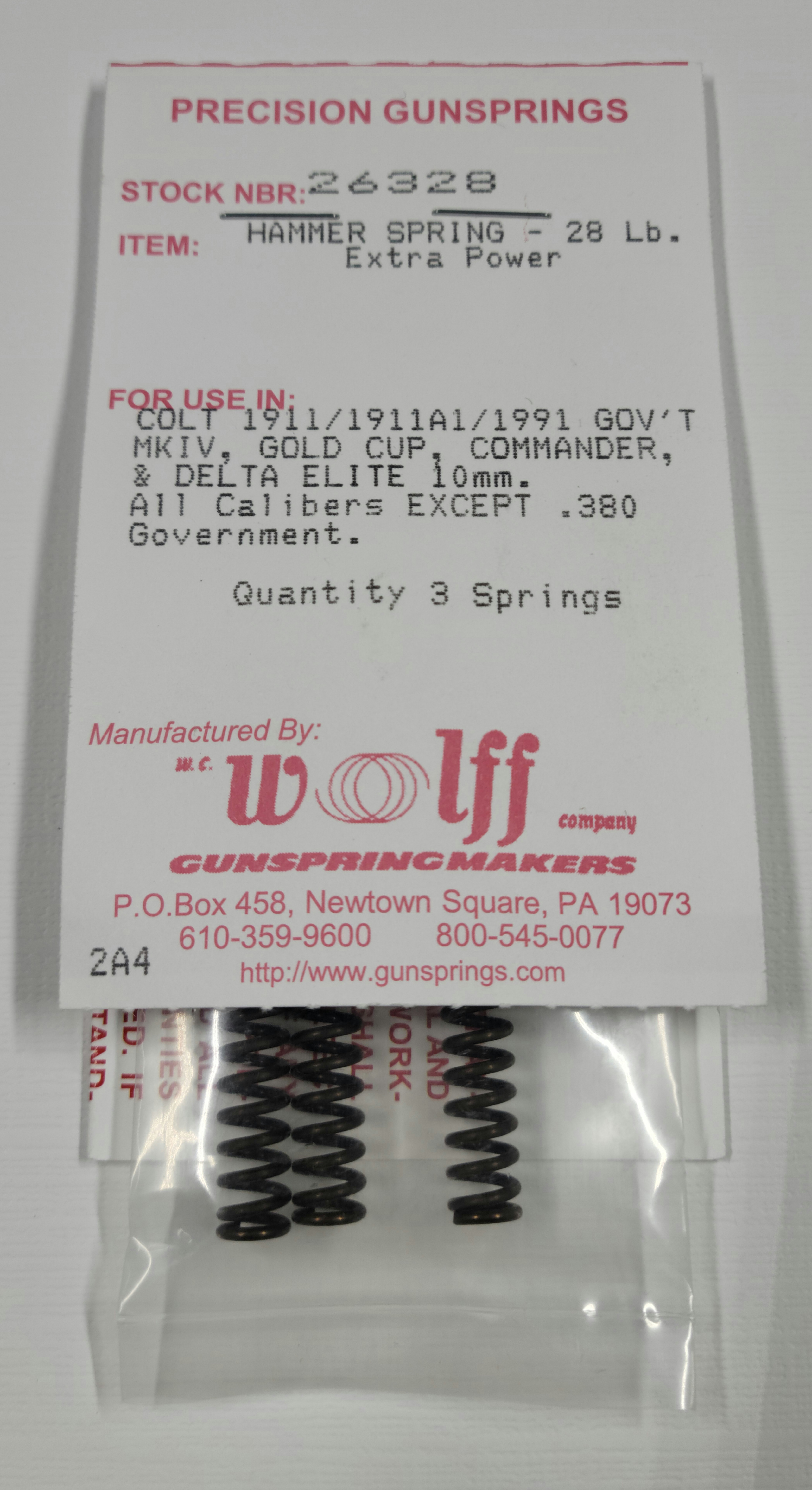 26328 Wolff COLT 1911/CMMDR RP HAMMER SPRING 28LB Pak of 3