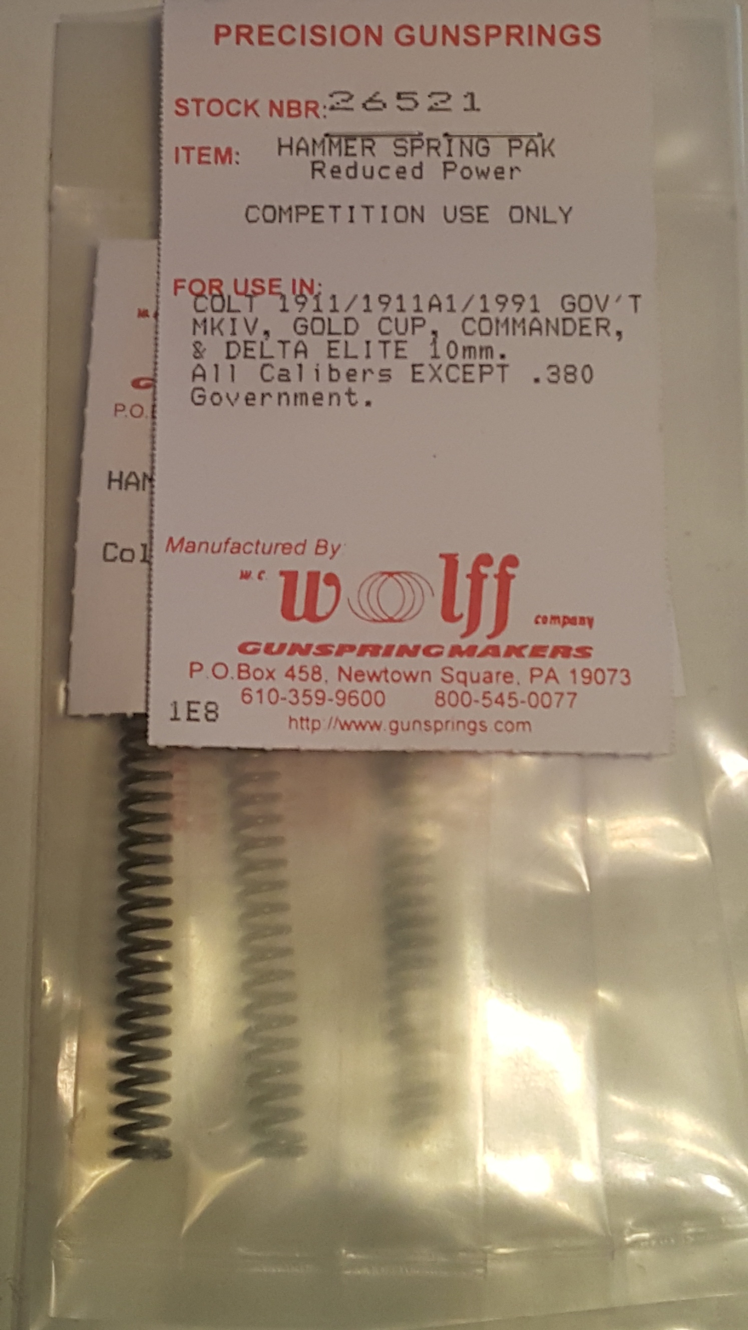26418 Wolff COLT 1911/CMMDR RP HAMMER SPRING 18LB Pak of 10