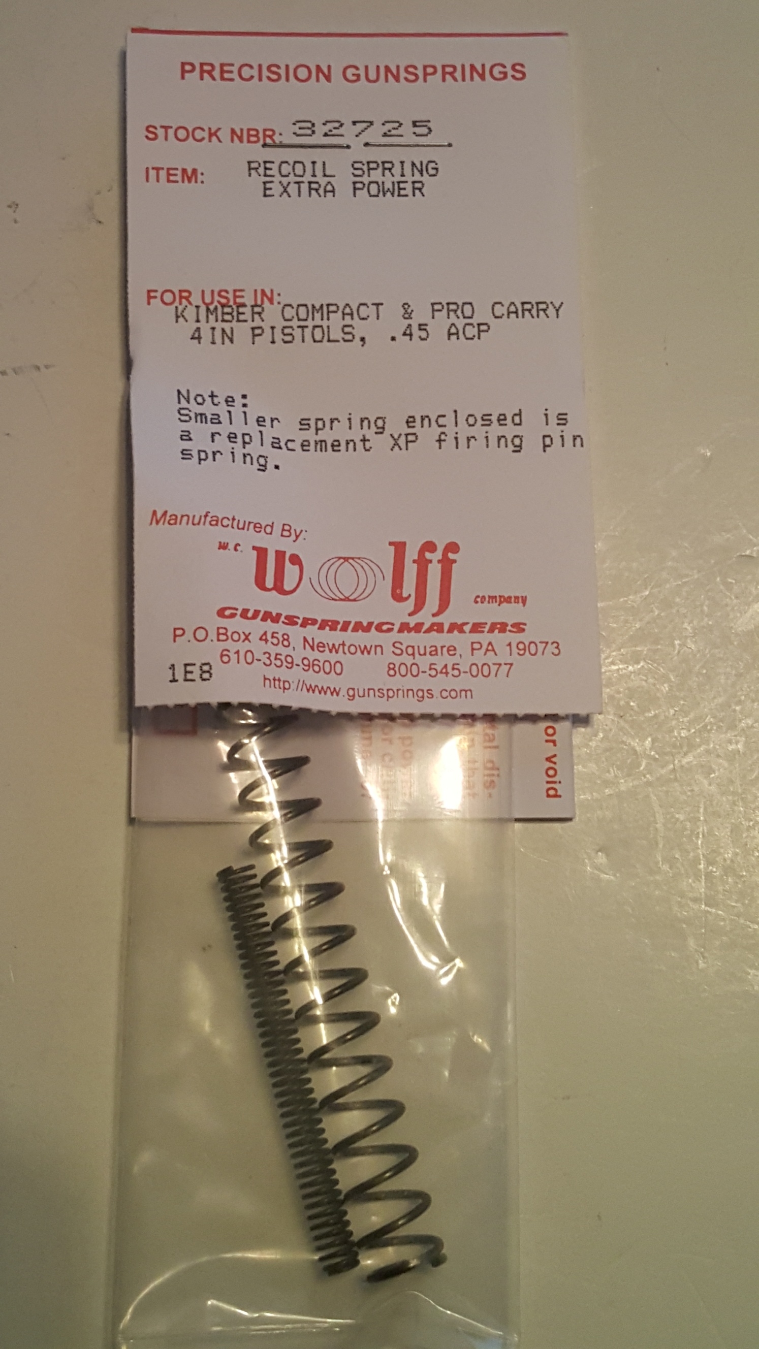 32725 Wolff KIMBER 4IN .45 PISTOL IMPROVED XP RECOIL SPG2