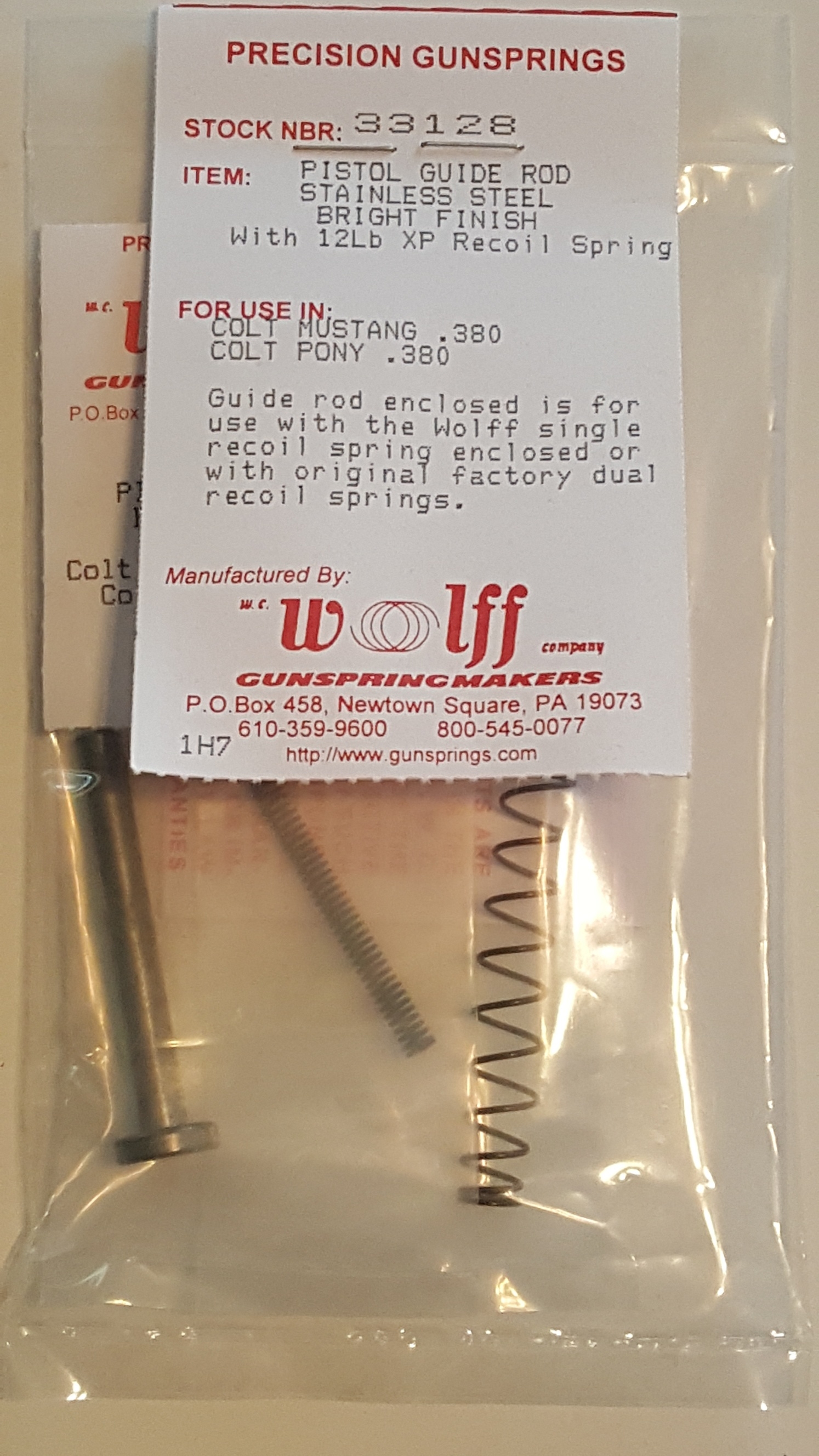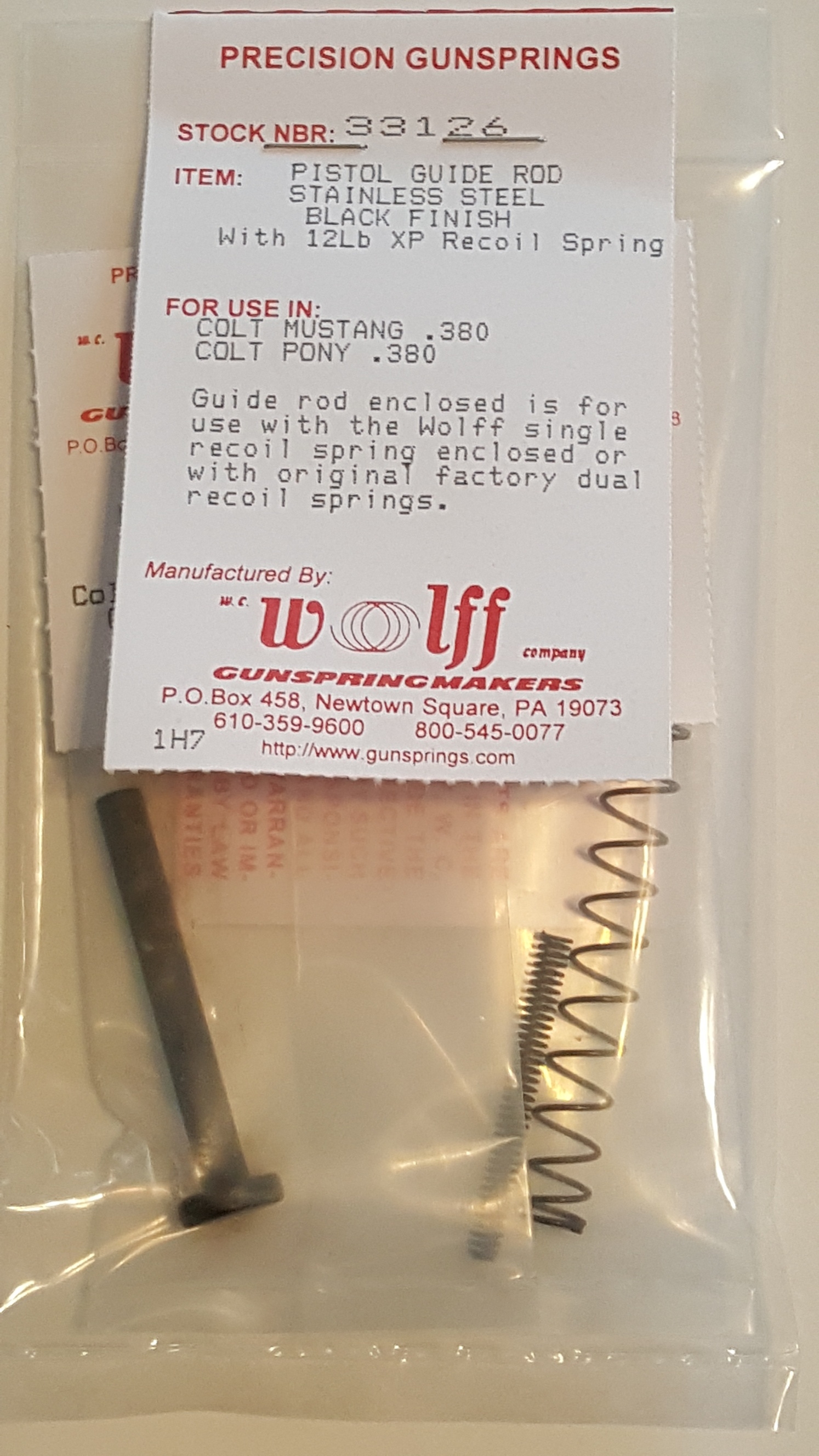 33128 Wolff COLT Mustang/Pony 380 SS Recoil Spring Guide & 12LB