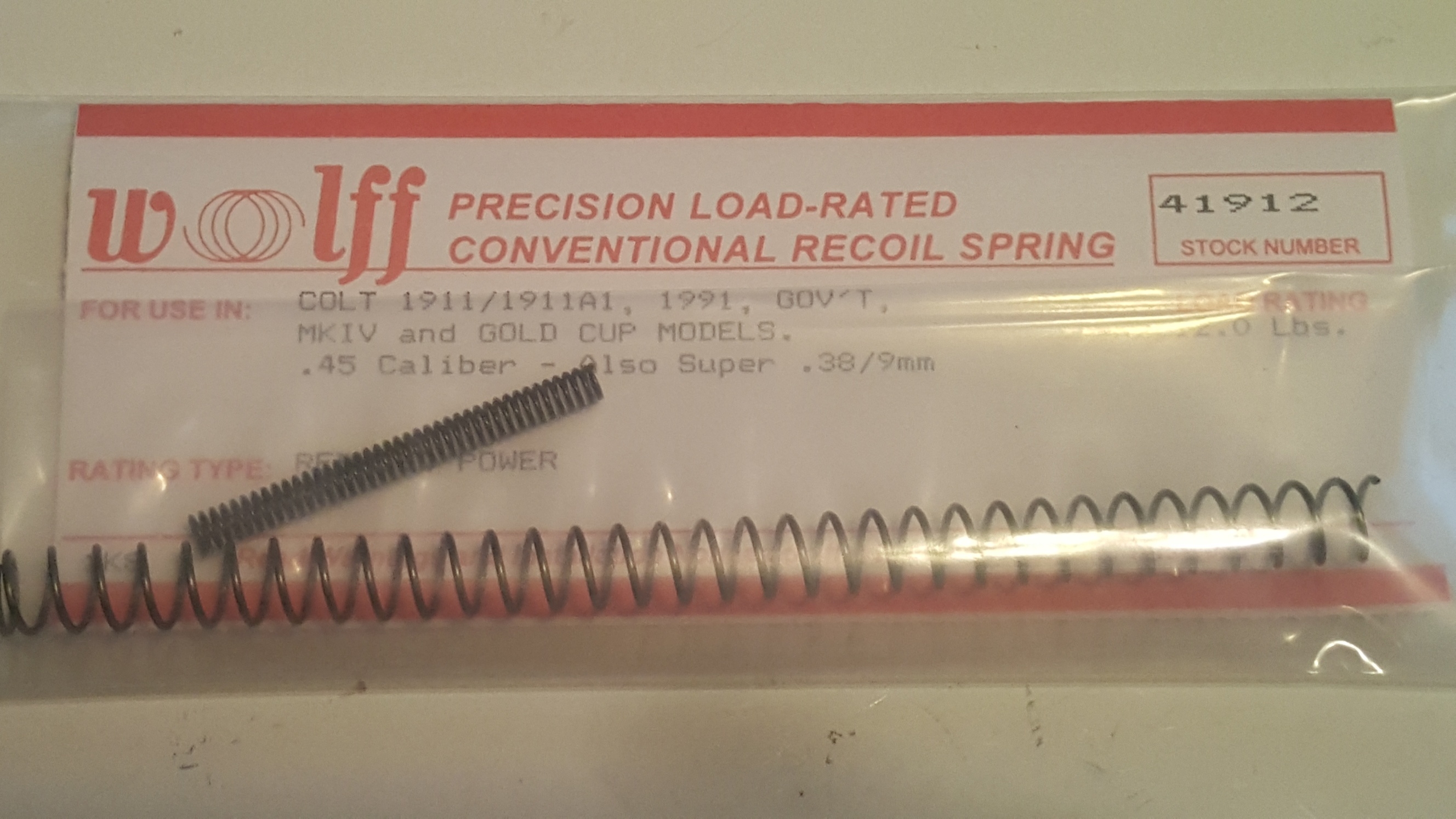 41912 Wolff COLT 1911 12LB RECOIL SPRING (RP)
