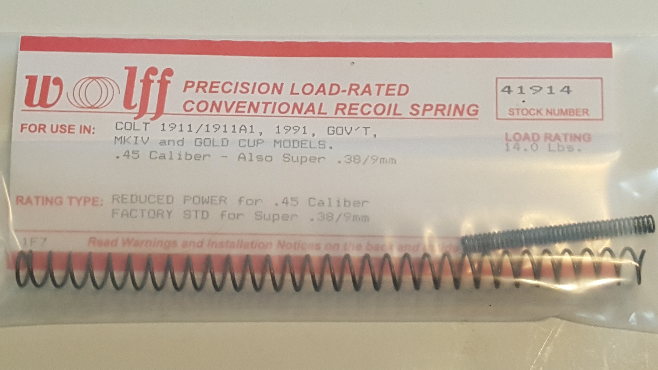41914 Wolff COLT 1911 14LB RECOIL SPRING (RP)