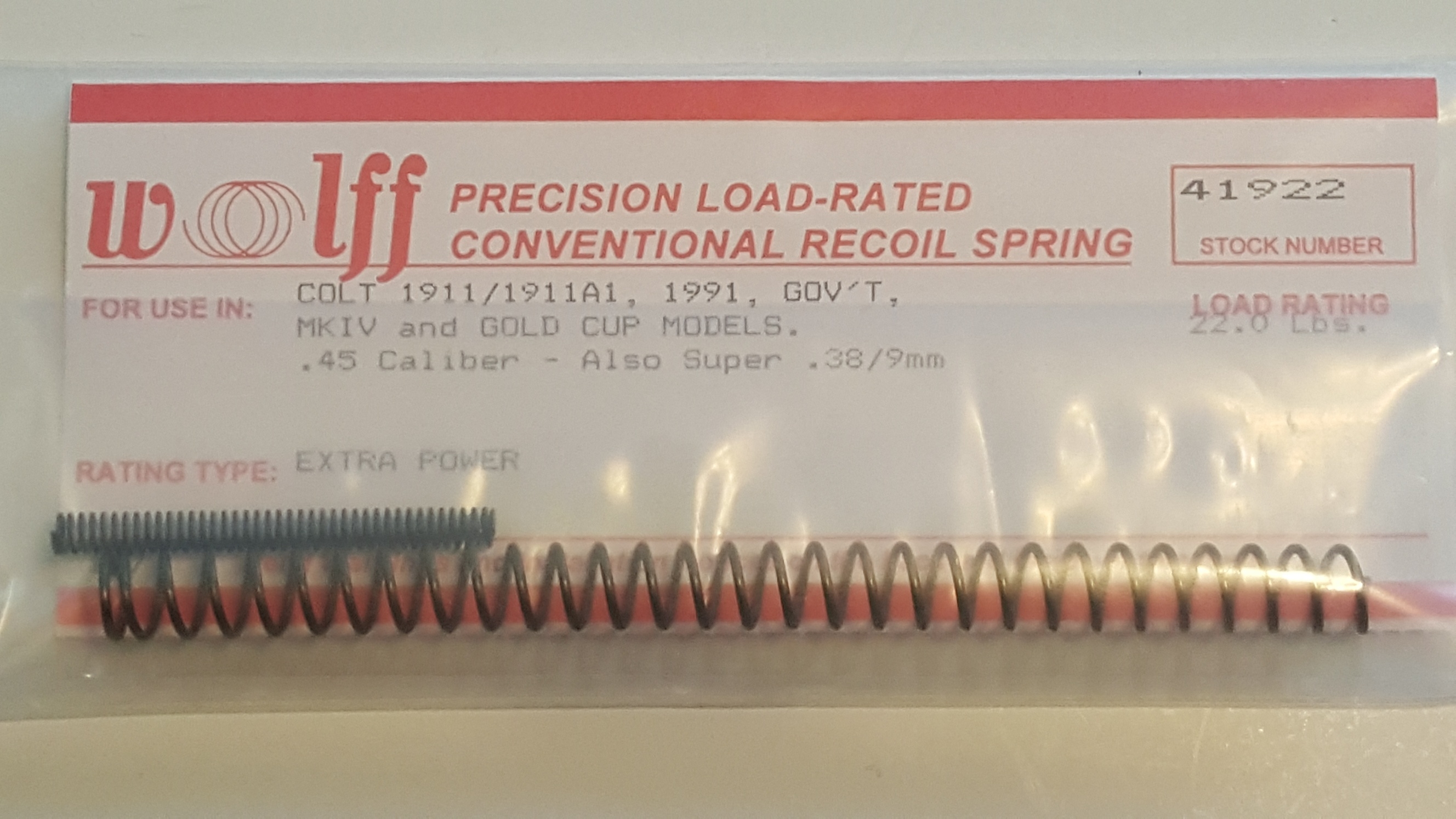 41922 Wolff COLT 1911 22LB RECOIL SPRING XP