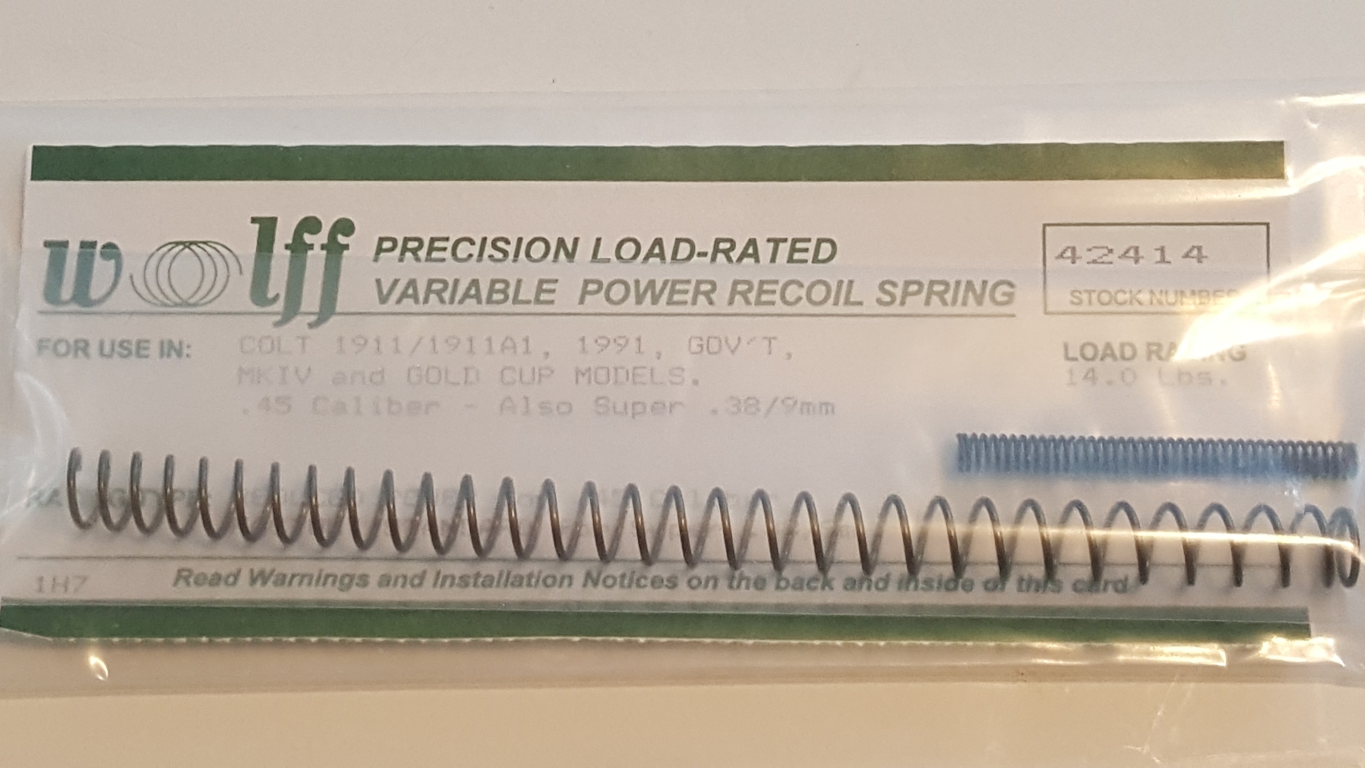 42414 Wolff 1911 Full size 14# Variable Power Recoil Spring RP