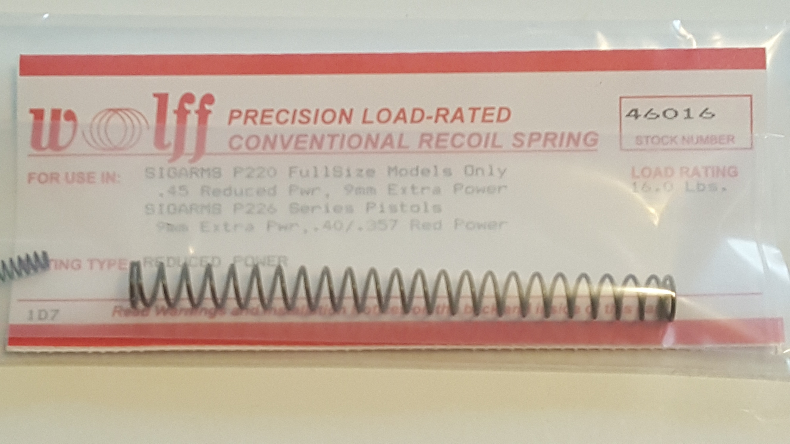 46016 Wolff SIG Sauer P226/P220 Recoil Spring 16LB