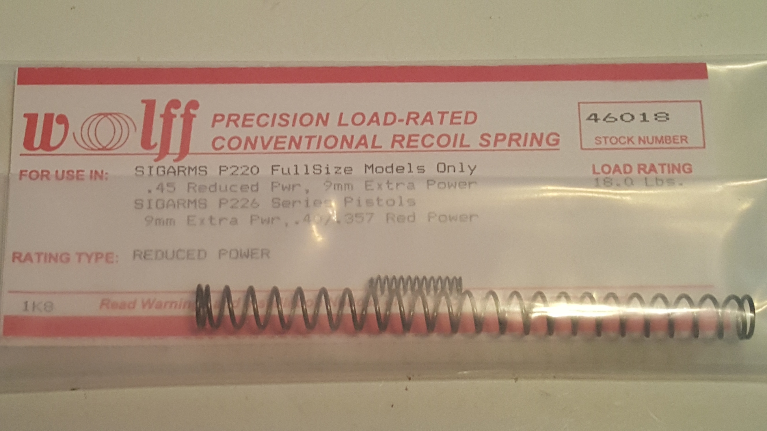 46018 Wolff SIG Sauer P226/P220 Recoil Spring 18LB